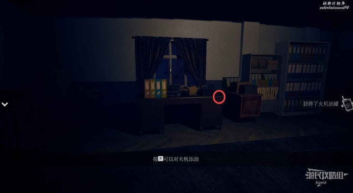 注意在遊戲中多收集火機油罐,當打火機的油量耗盡後,就會完全熄滅無法照明,此時就需要按R使用火機油罐對火機填油,然後就能繼續使用打火機了。