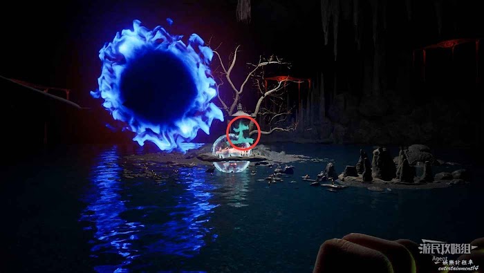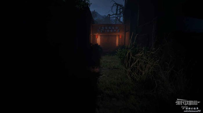 開門後看到棵大樹,大樹附近有四個燈可以點燃。(大樹這裡的解謎是個支線任務,也可以不做。)