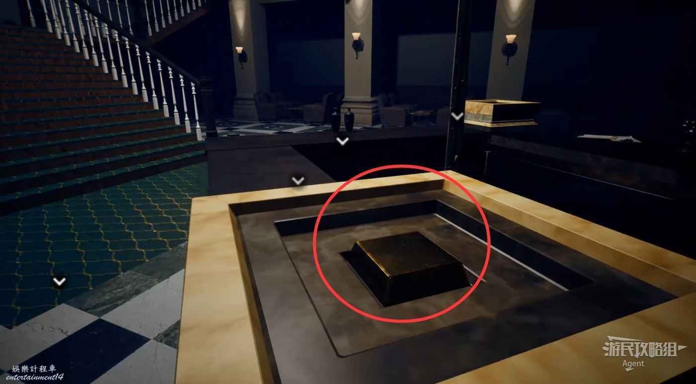 一個房間裡使用密碼打開保險箱,拿到大廳右側雕像。