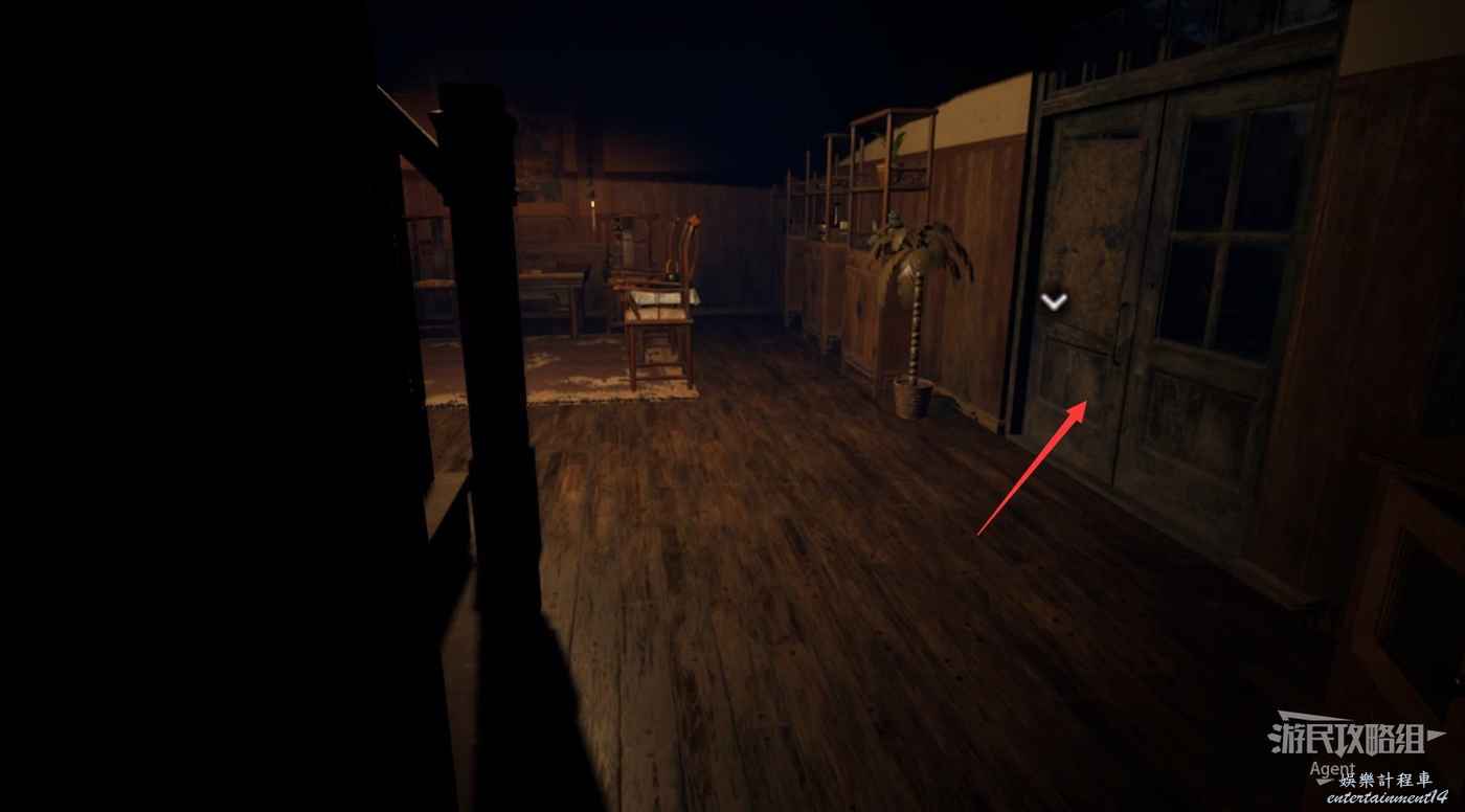 待鬼子離開後出來,繼續往前走,正要開雜物間門時發現地上的符咒可電擊鬼子。