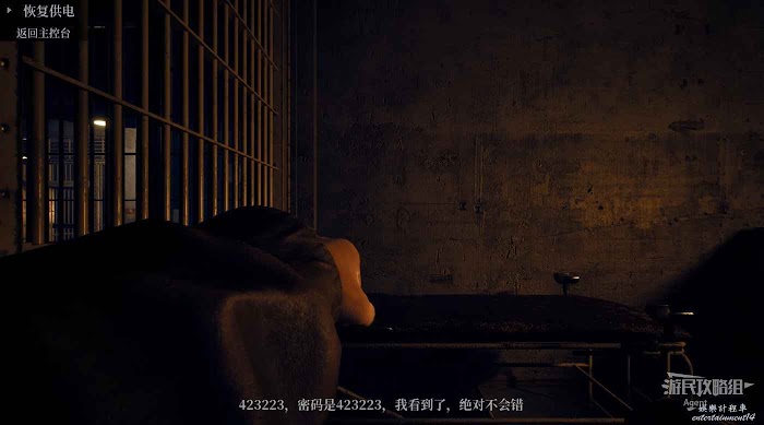 出來開門發現回到了剛才來的時候的樓梯道,下樓返回操作台輸入密碼423223。