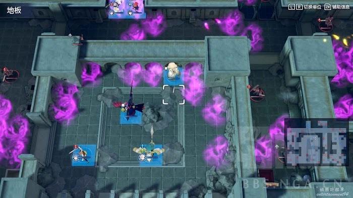 前兩回合]右下如圖一步到位,最遠的打手需要移動力5,其餘4即可。神威開霧清除瘴氣,之後只要每回合恢復加開霧即可無痛掛機。