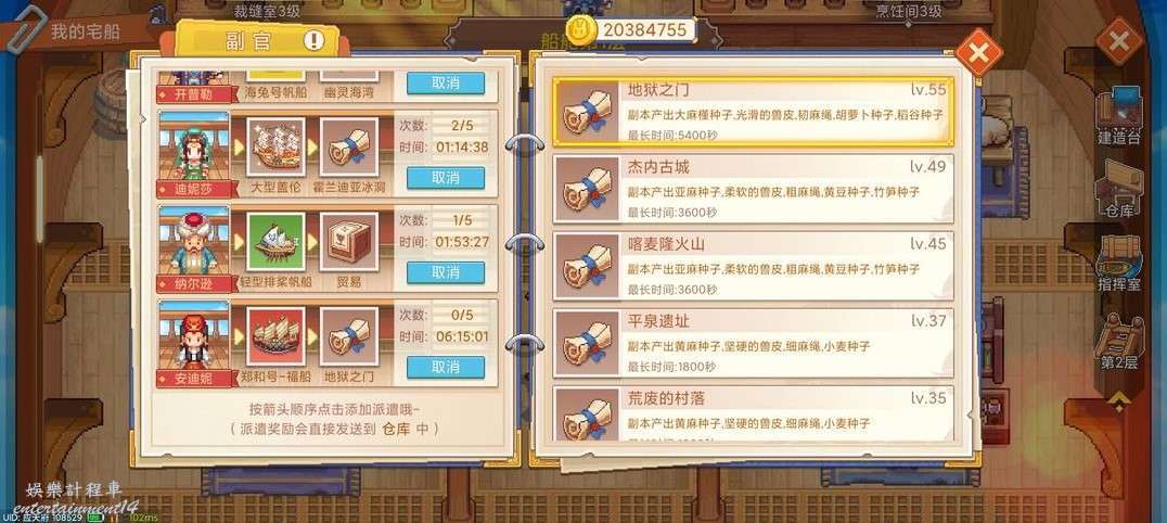 4.蒙山搞運廣圖紙做船2-4膄,(一級材料只要花金幣可以買)然後所有船水手倉改貨倉