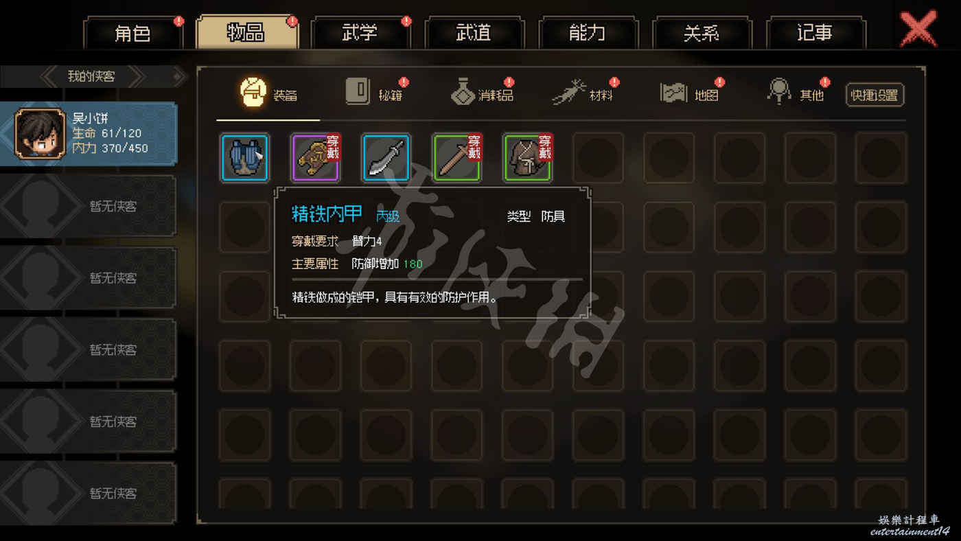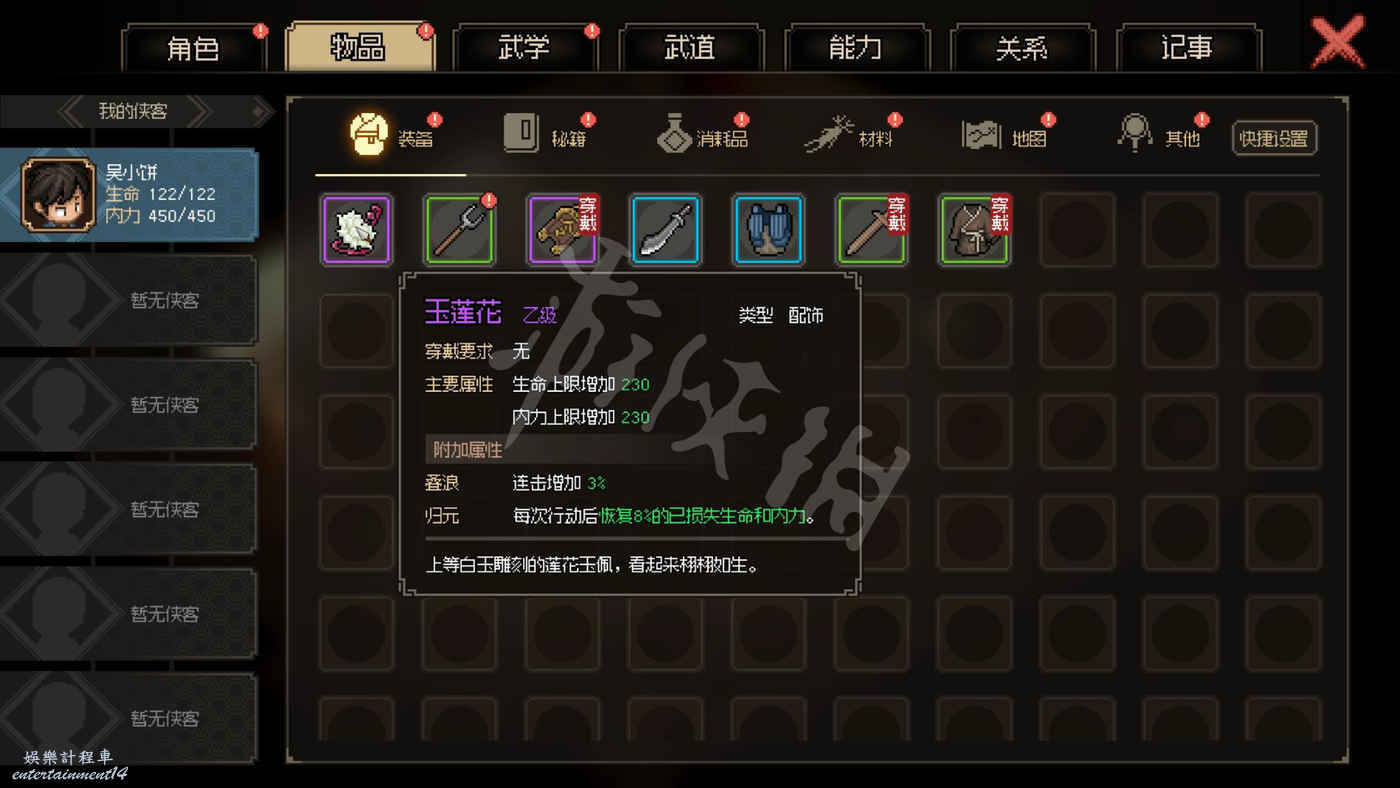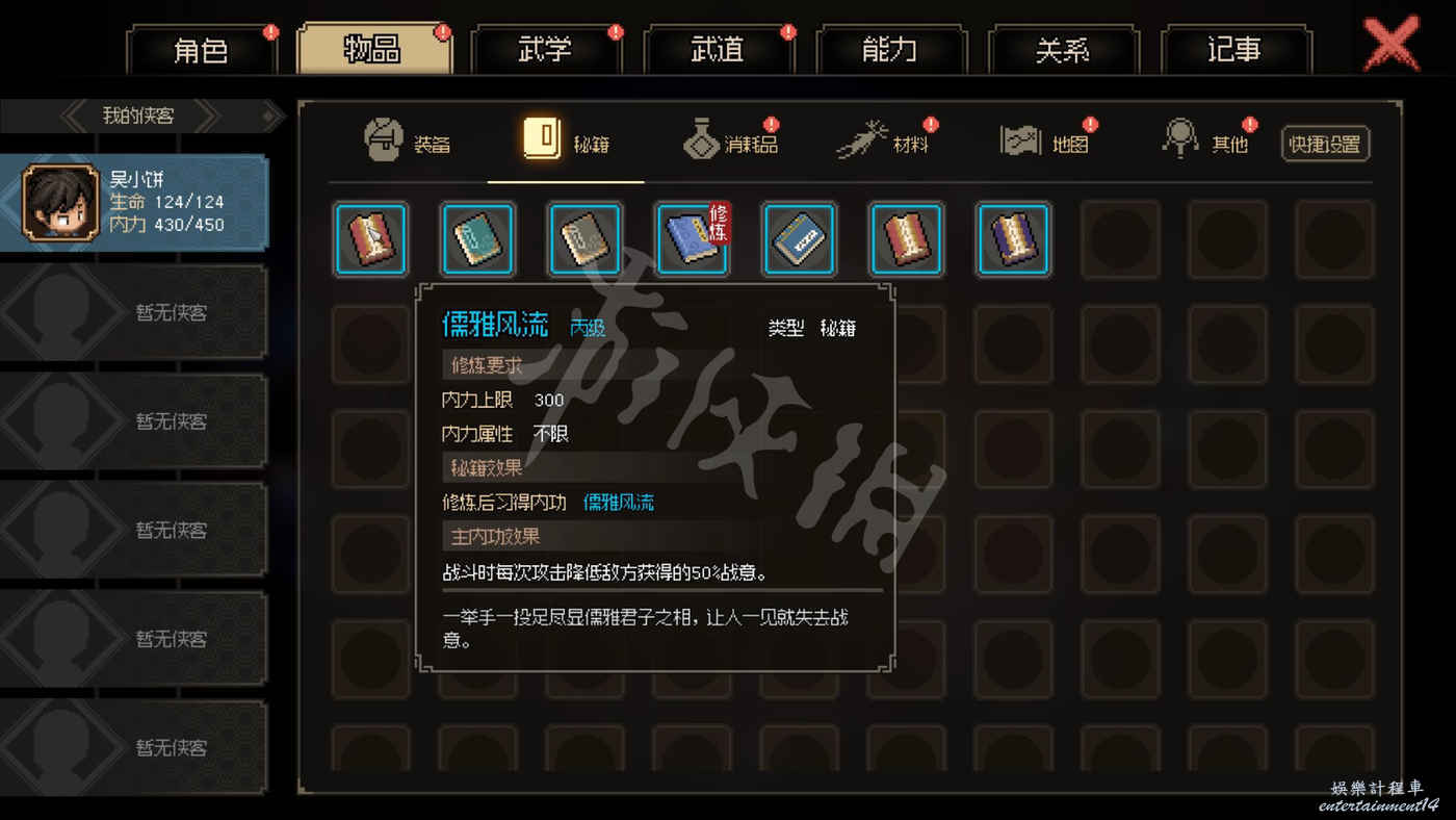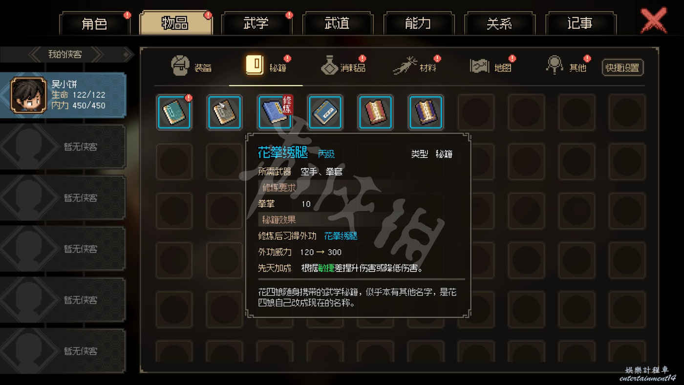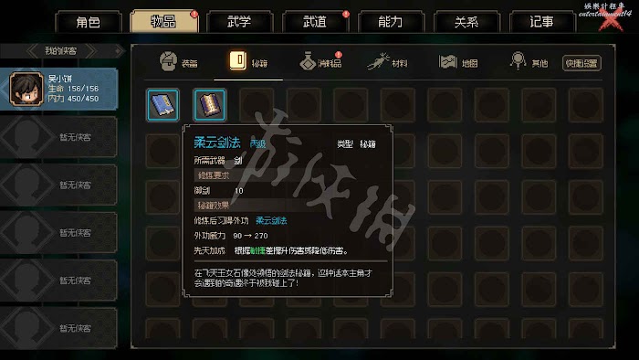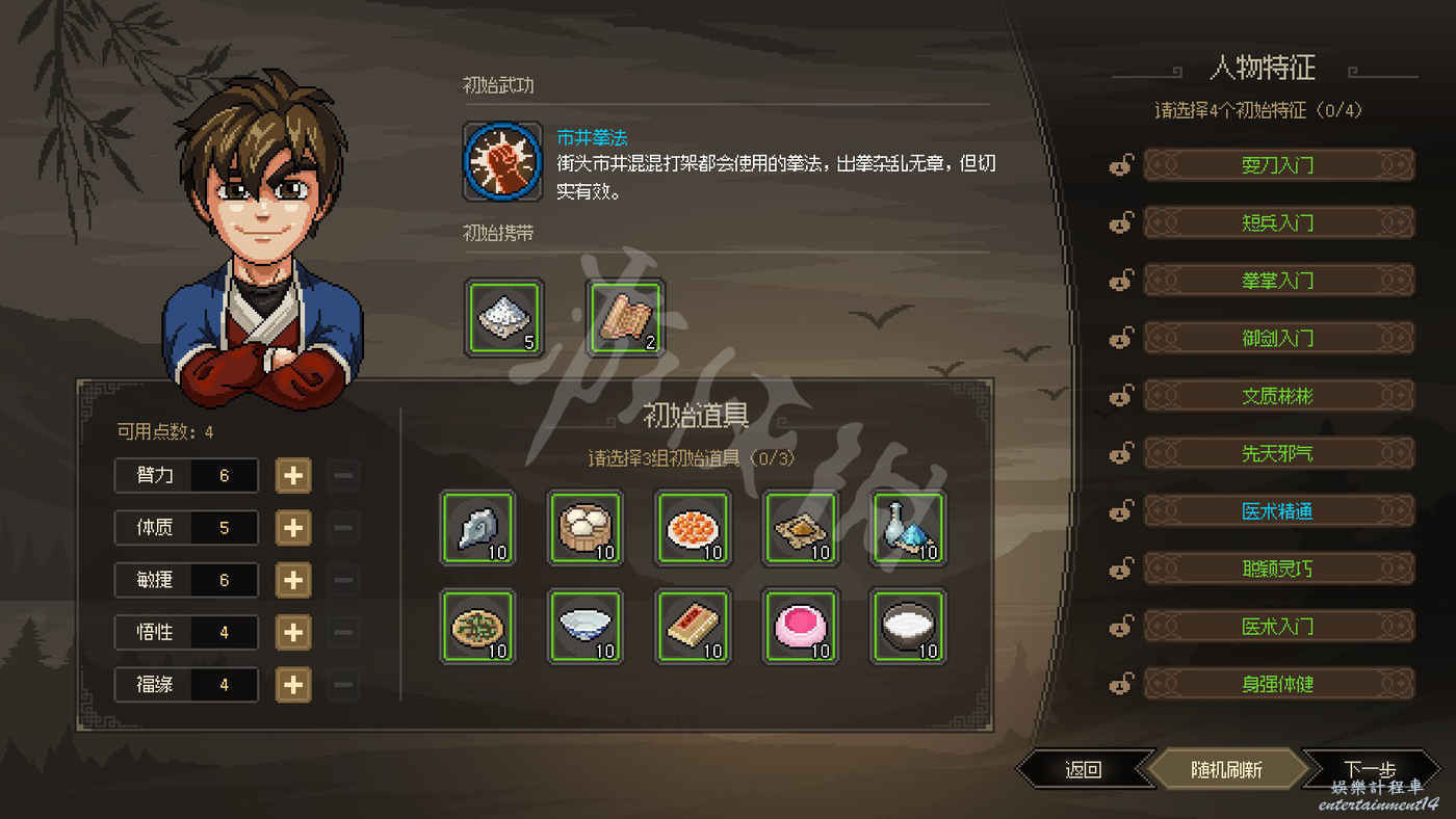 初始武功和初始攜帶當前版本為固定選擇無法變更。
