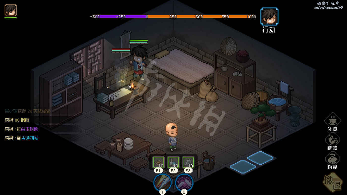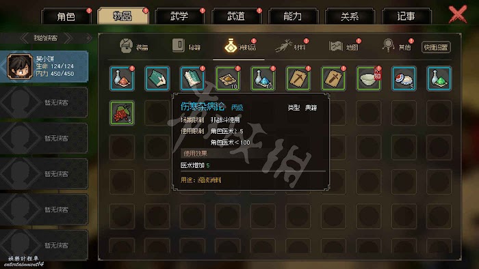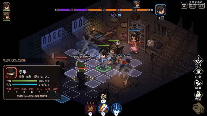 使用暗器攻擊目標,或使用背包裡的道具進行恢復。