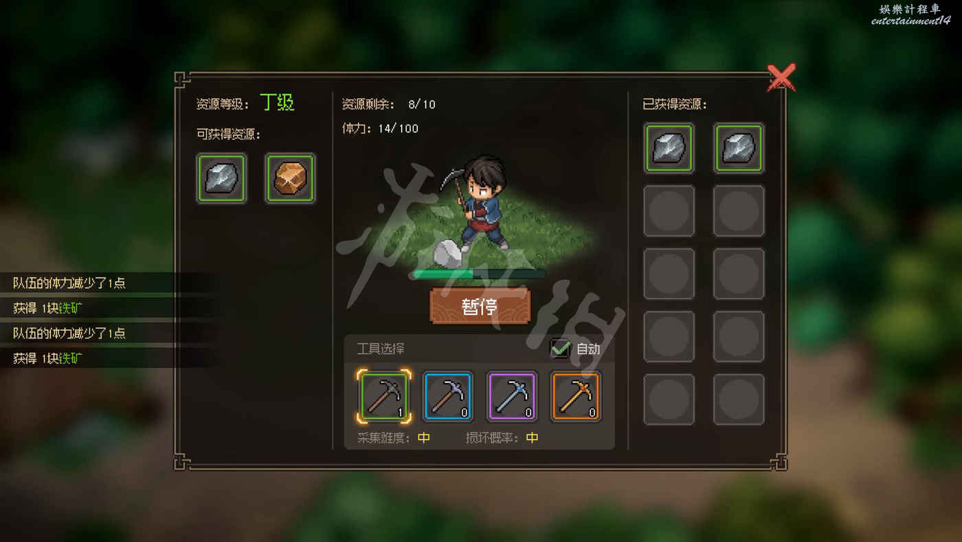 進行採集工作都需要消耗體力,工具也有幾率會損壞。能採集的資源數量、種類也都會標記在採集介面上。