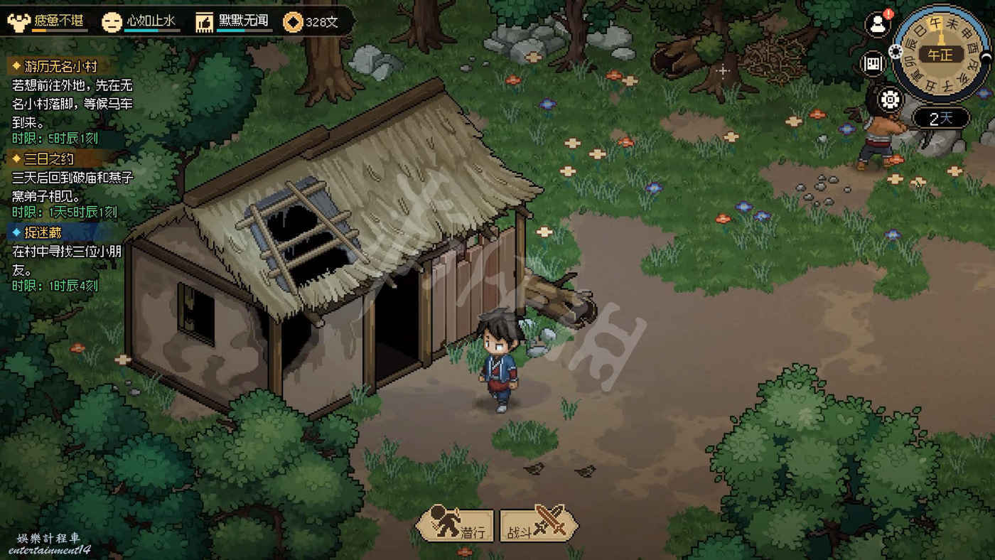 捉迷藏開始後,玩家要在兩個時辰內找到3個小孩子,他們分別藏在了村中三間屋子裡,可以根據過場動畫時三人走向確定大致方位。
