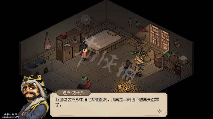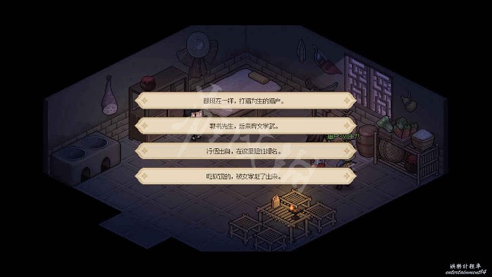 對話中劉十八會讓主角猜一下他之前的身份,選擇【行伍出身】可以增加兩點智慧。