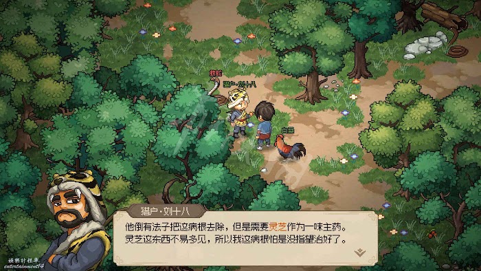 與白頭翁對話,他會委託主角前往迷蹤林採集靈芝。