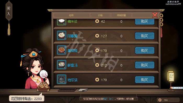 如果廚藝點數夠的話可以直接做給他吃,如果不夠的話可以前往客棧找花四娘購買這三種菜肴。