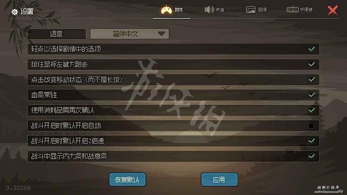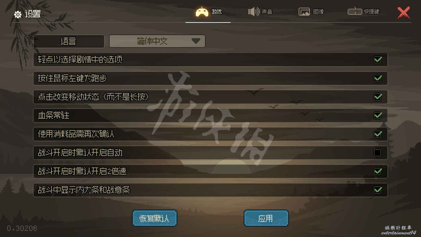 默認設定下,血條、內力、戰意條不會在戰鬥顯示,玩家可以在【設置】→【遊戲】中勾選相關選項來顯示。