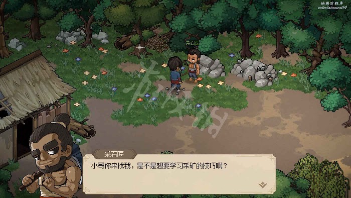 和村北采石匠對話,會學習如果採集資源,並且會獲得一把礦鎬。