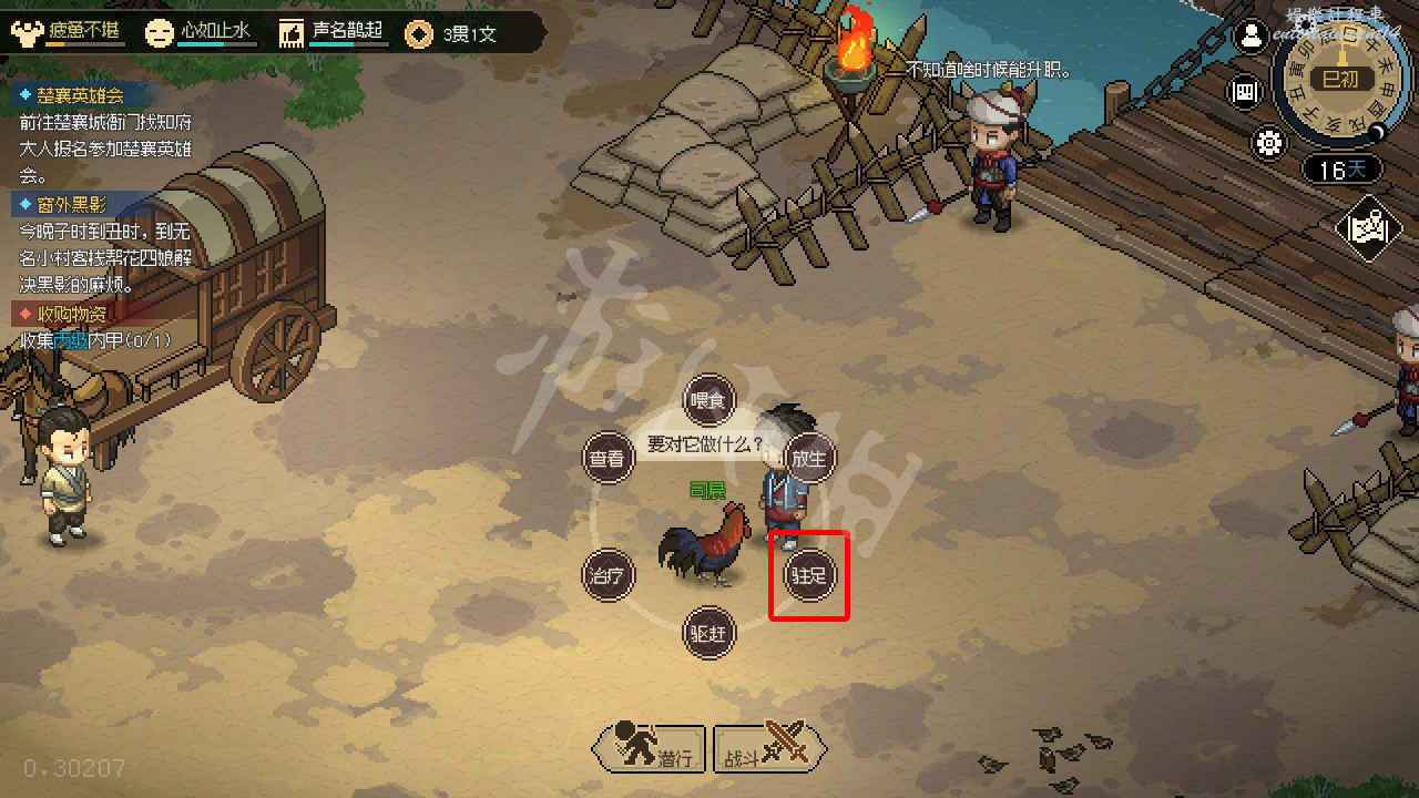 同時寵物具有飽食度,需要不斷餵食來維持。另外,進入類似楚襄城這樣的大城鎮時,寵物是不允許一同進入的。玩家可以與寵物交互選擇駐足指令讓其留在原地。