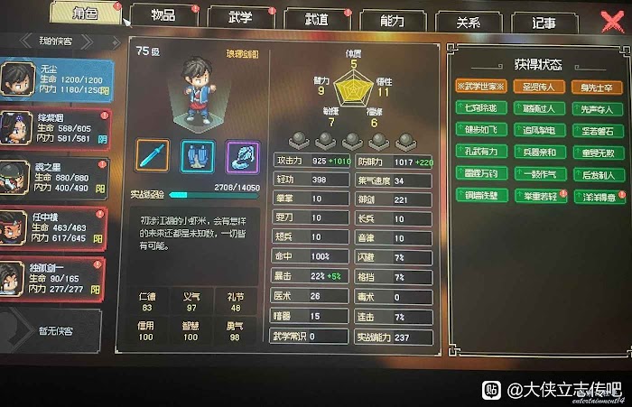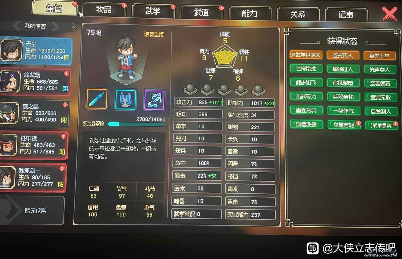 這個是我打了一天在不是很好的出始天賦情況下無修改解鎖劍道宗師成就的面板,因為初始天賦不行,學不了劍一的8敏捷紫劍法和12悟性的橙劍法,但是理論存在劍資資質可達300左右,同時如果配上天煞孤星等級可達85+甚至90+