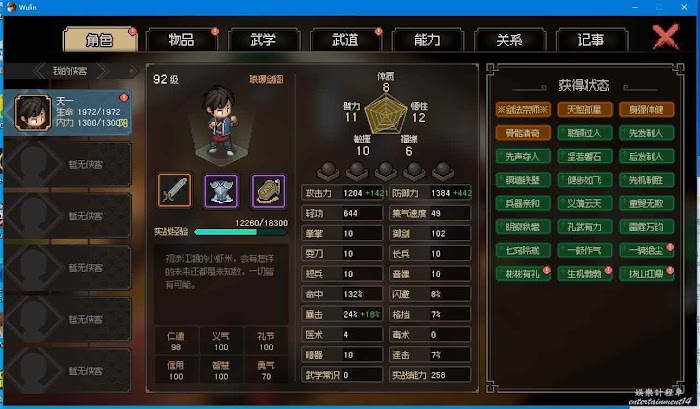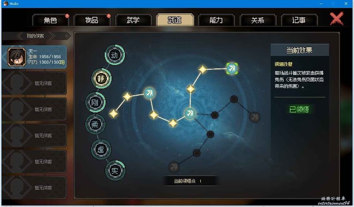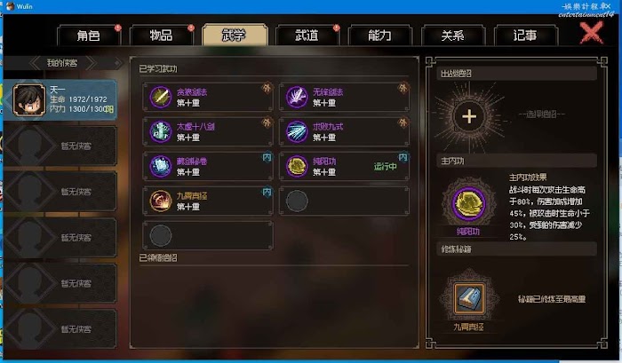 由於多了兩個空位,可以開局學一個游龍,或者,入門派學一個九宮,再或者,大城買一本劍法。