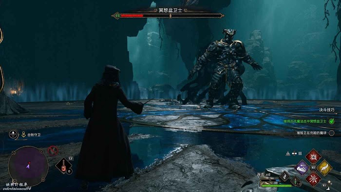 隨後那段內容,在簡明扼要擔當教學作用的同時,也十足的呈現著這個魔法世界的魅力:海上孤零零的遺跡暗藏通往未知空間的石壁,遵循著鑰匙線索的師徒兩人來到神秘的地精銀行,金庫中的藏品有著神秘的儀式才能揭示,而如影隨意的邪惡哥布林哈克蘭甚至讓博學多才的菲戈教授難以抵擋……圍繞著霍格華茲的“傳承”(英文遊戲名的legacy)——古代魔法,一場正與邪的較量就此拉開了序幕。