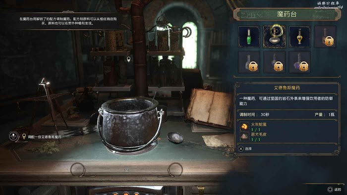 而《霍格華茲之遺》在這方面做的就相當對我的胃口,甚至玩出了點煉金工房的感覺——比如喝的藥劑,同樣是需要自己種植物和採集、自己攪大鍋製造的(雖然沒有複雜的分子式重構等更進一步的系統)。這種所穿、所用的物品都需要自己一步步的完成獲取的過程,並且和學院的課程、角色的劇情等遊戲內容息息相關,對於魔法世界的代入感效果就十分不錯了。