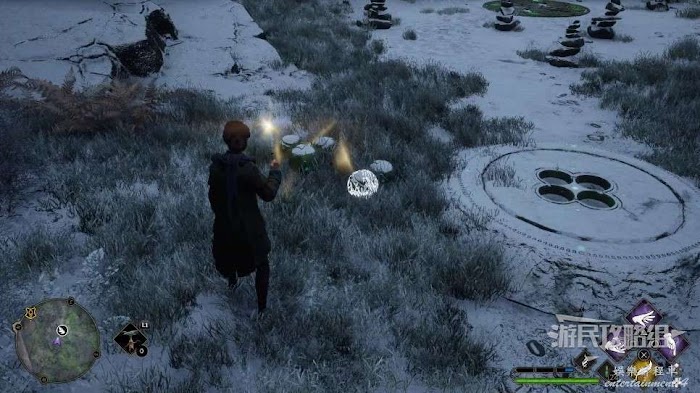 地上會有幾個小凹槽,用【飛來咒】將附近的小石球拿過來,嵌入凹槽即可。
