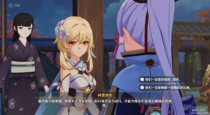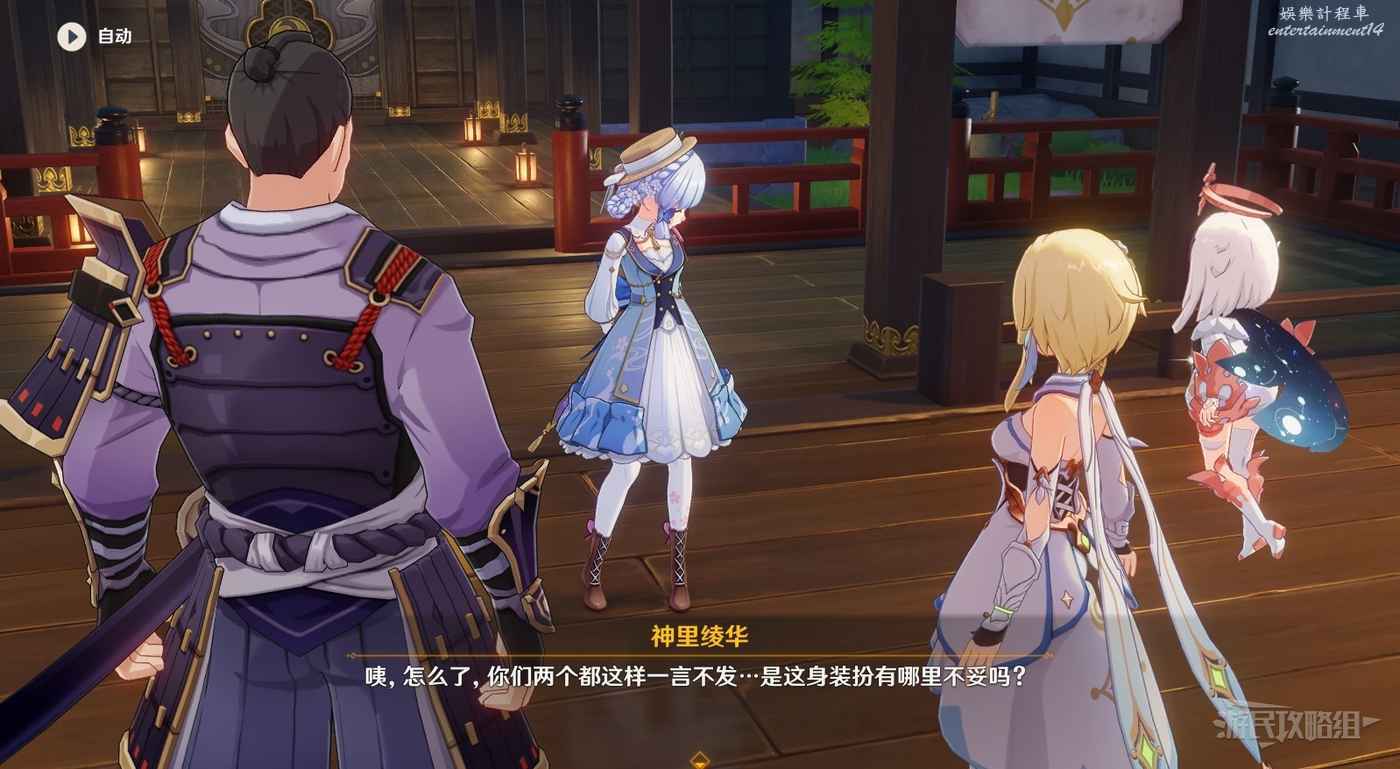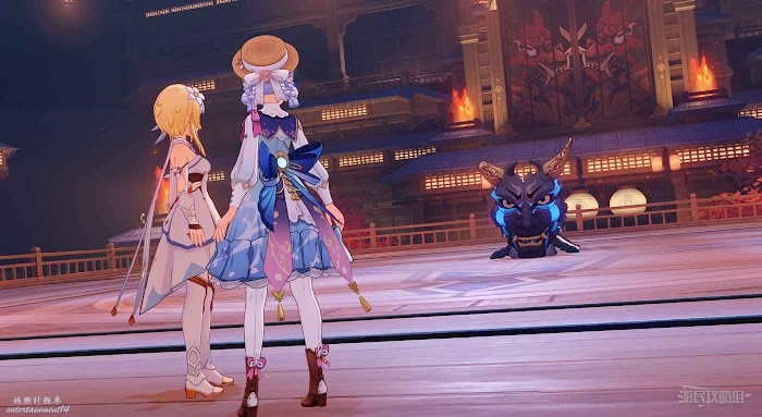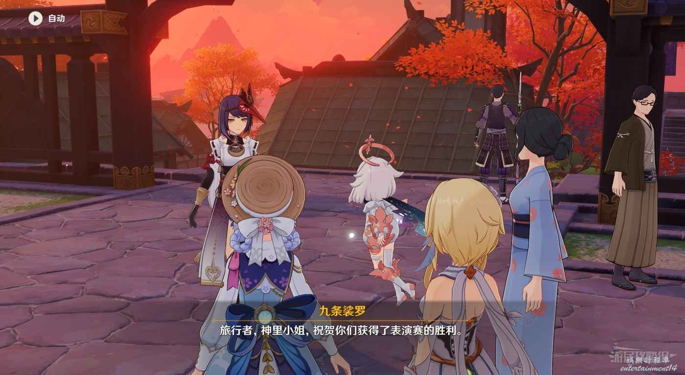 對話結束後傳送回比賽場地,稍微往台階下面走一些自動觸發劇情。然後是和淩華一起對戰魔偶劍鬼。注意這裡主角為雷元素,多使用戰技和爆發好了就按,多抗傷。