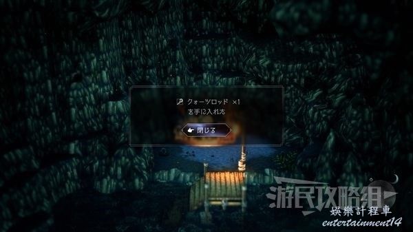 存檔之後繼續乘船往右走即可看到一個寶箱。開啟寶箱可獲得『石英杖』。
