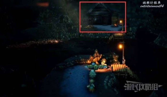 爬上梯子後往上走,進入下圖所示的小屋,從老人處獲得「特製的魚餌」,然後原路返回,爬下梯子。