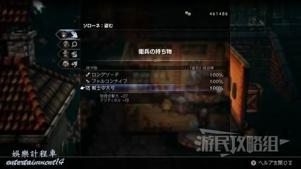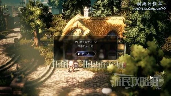 歧路旅人 2 (Octopath Traveler 2) 戰士大弓獲取方法 4 3 月 2023-03-04 廣告 作者:瑞破受氣包 來源:遊民星空 戰士大弓獲取方法① 前往「利夫蘭多地區-威爾格羅布」,可以在舞娘工會前的寶箱中獲得。 戰士大弓獲取方法② 可以從「布蘭德蘭多地區-輪敦工廠區」購買。 戰士大弓獲取方法③ 前往「赫巴蘭多地區-康寧灣」,在白天對道具店的衛兵使用地圖指令獲得。
