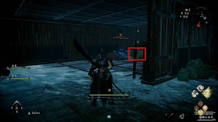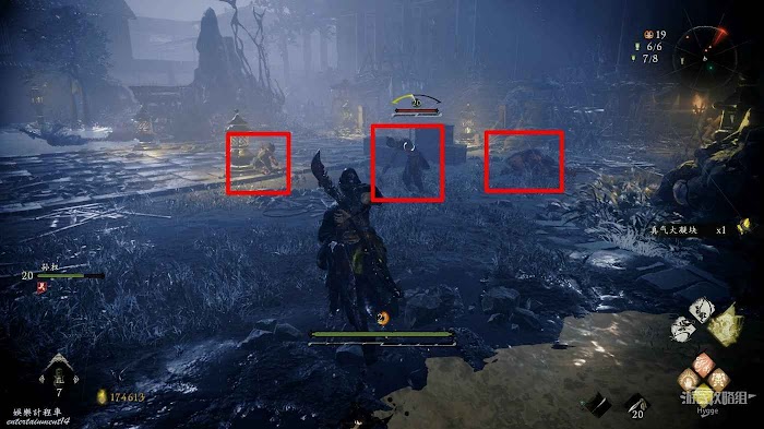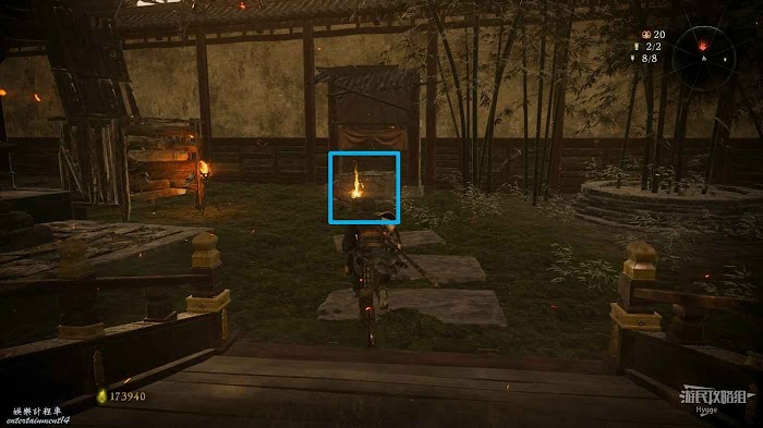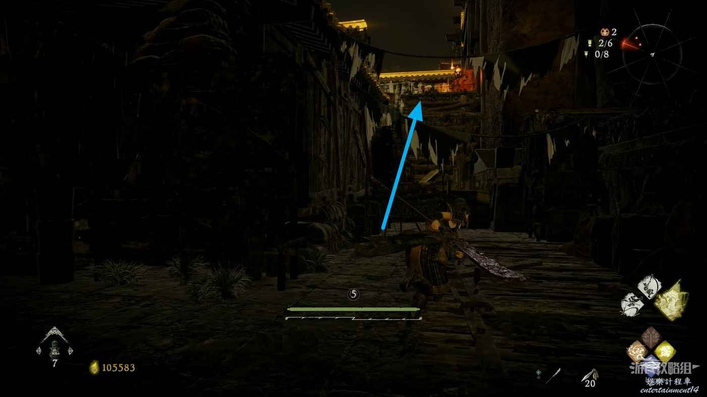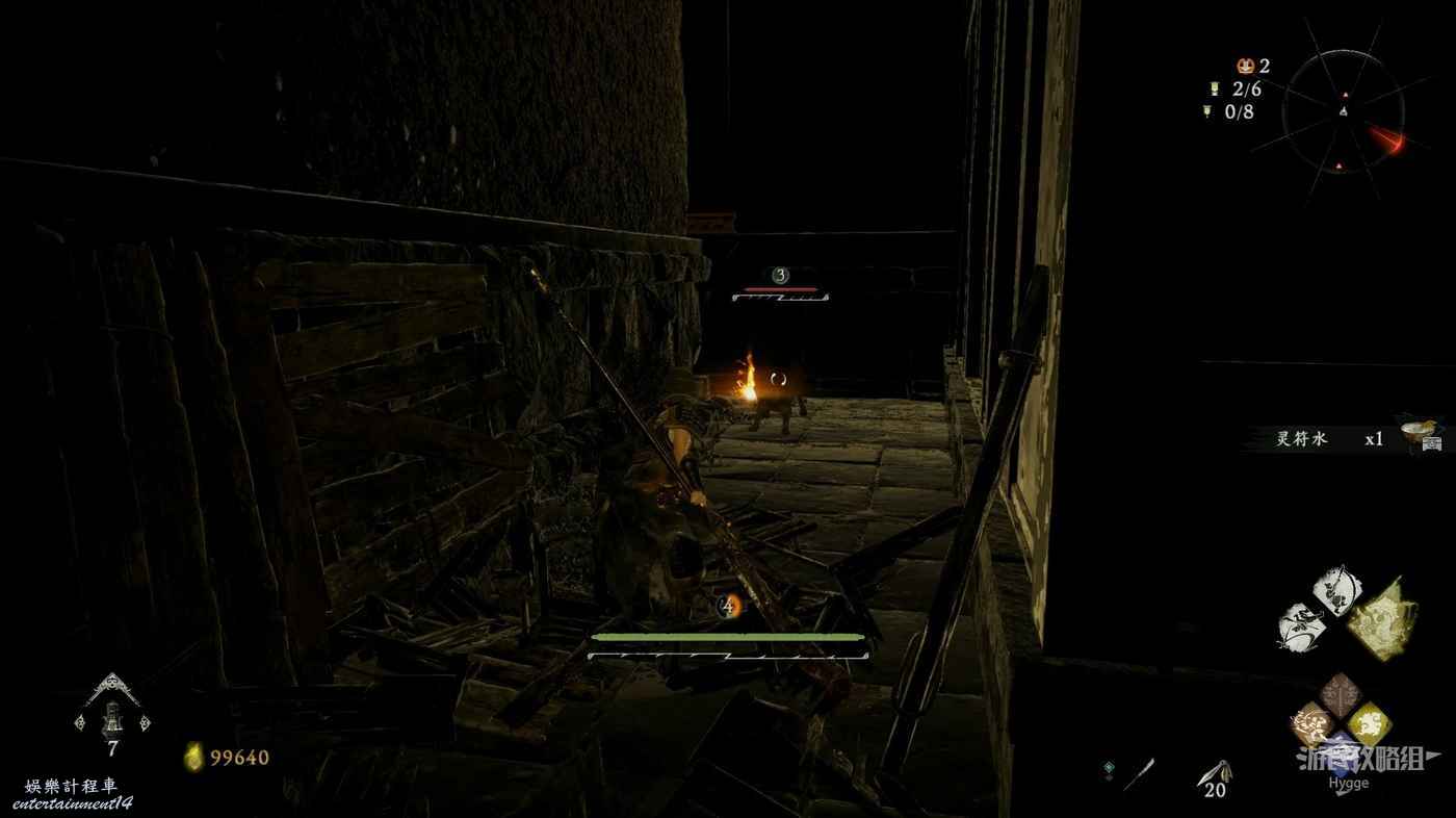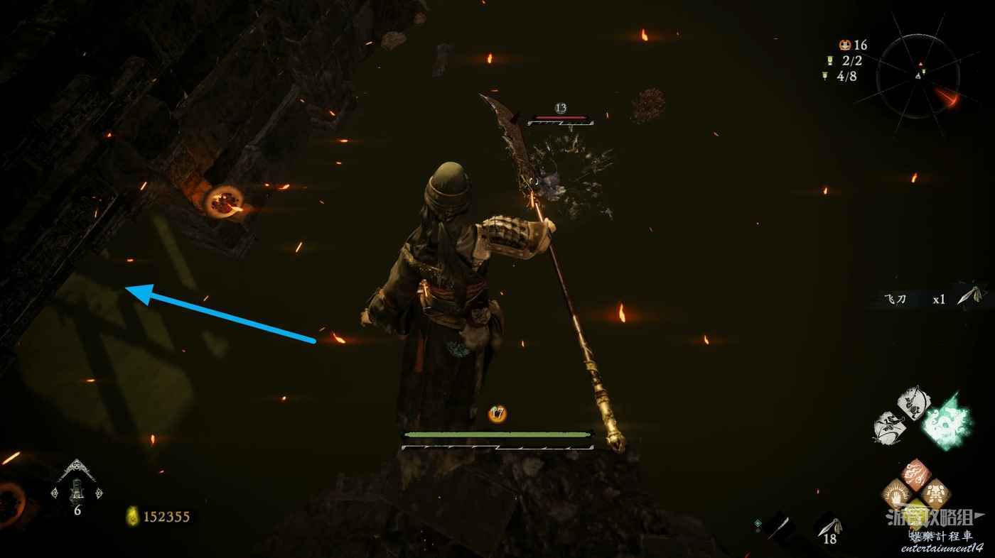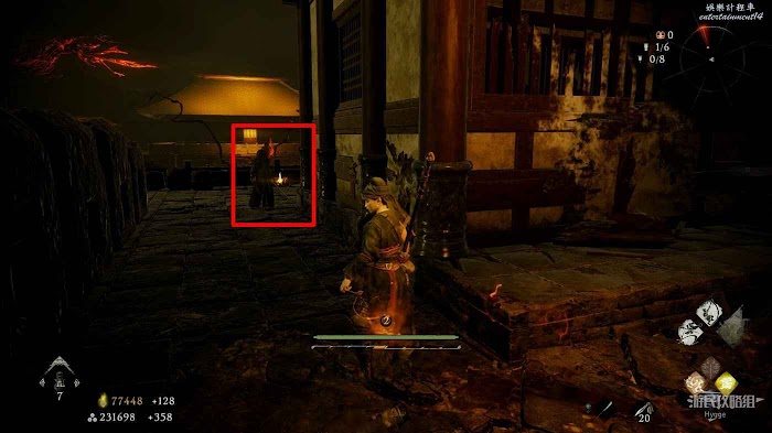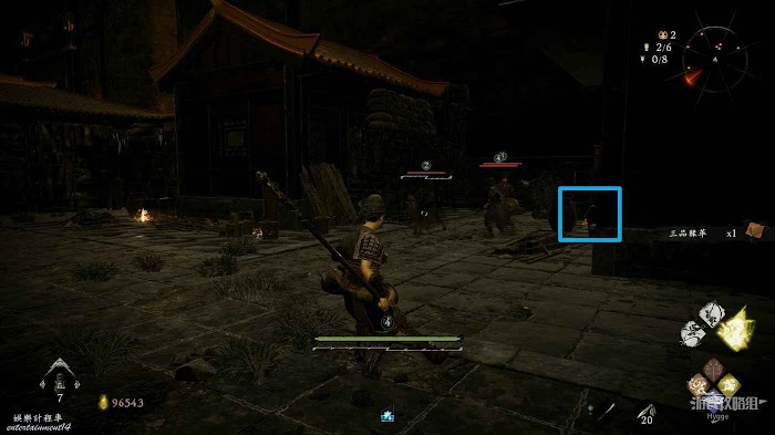 消滅前方手持火把的巡邏士兵後可以在其身旁找到1個真氣凝塊。