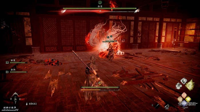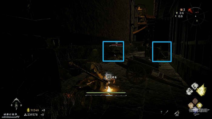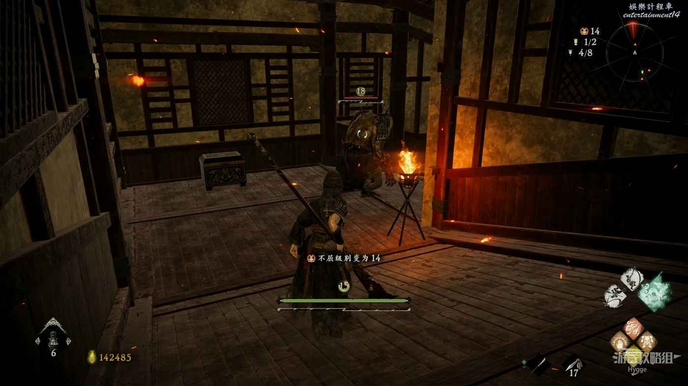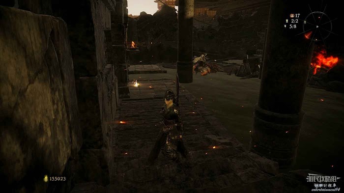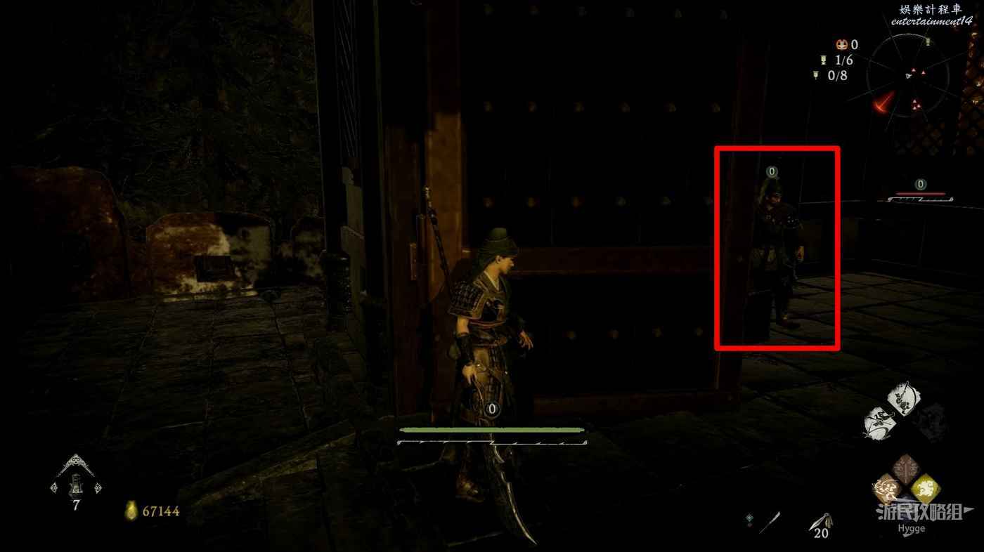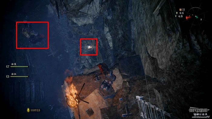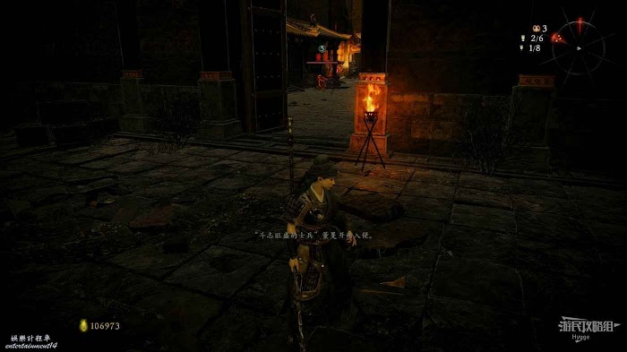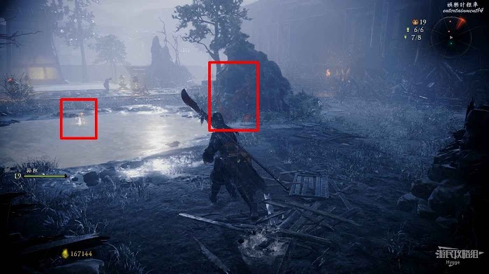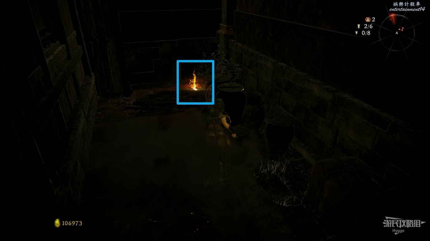 消滅前方手持火把的巡邏士兵後可以在其身旁找到1個真氣凝塊。