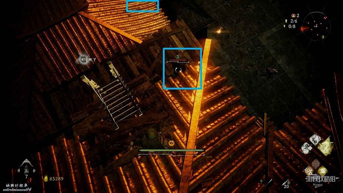 隨後回到2層,從旁邊的梯子處跳至屋頂。