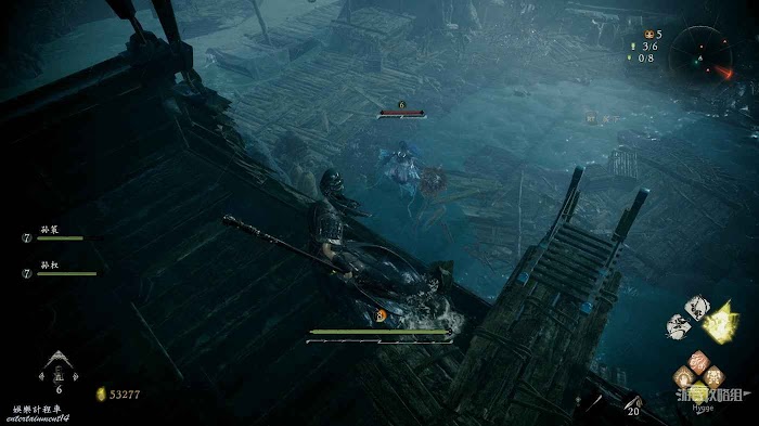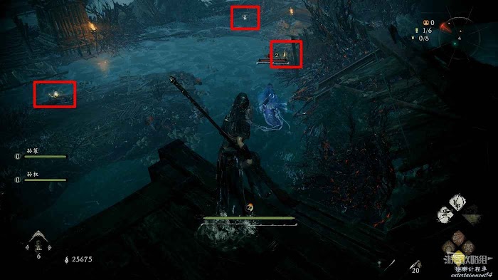 回到木架上從空中發動絕脈攻擊消滅下方水窪中的精英水鬼。