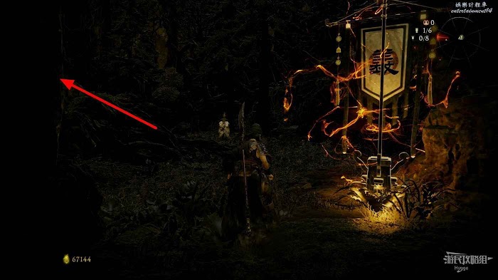 在剛剛撿到真氣碎片的下樓門前可以豎起1面旌旗(1/8)。