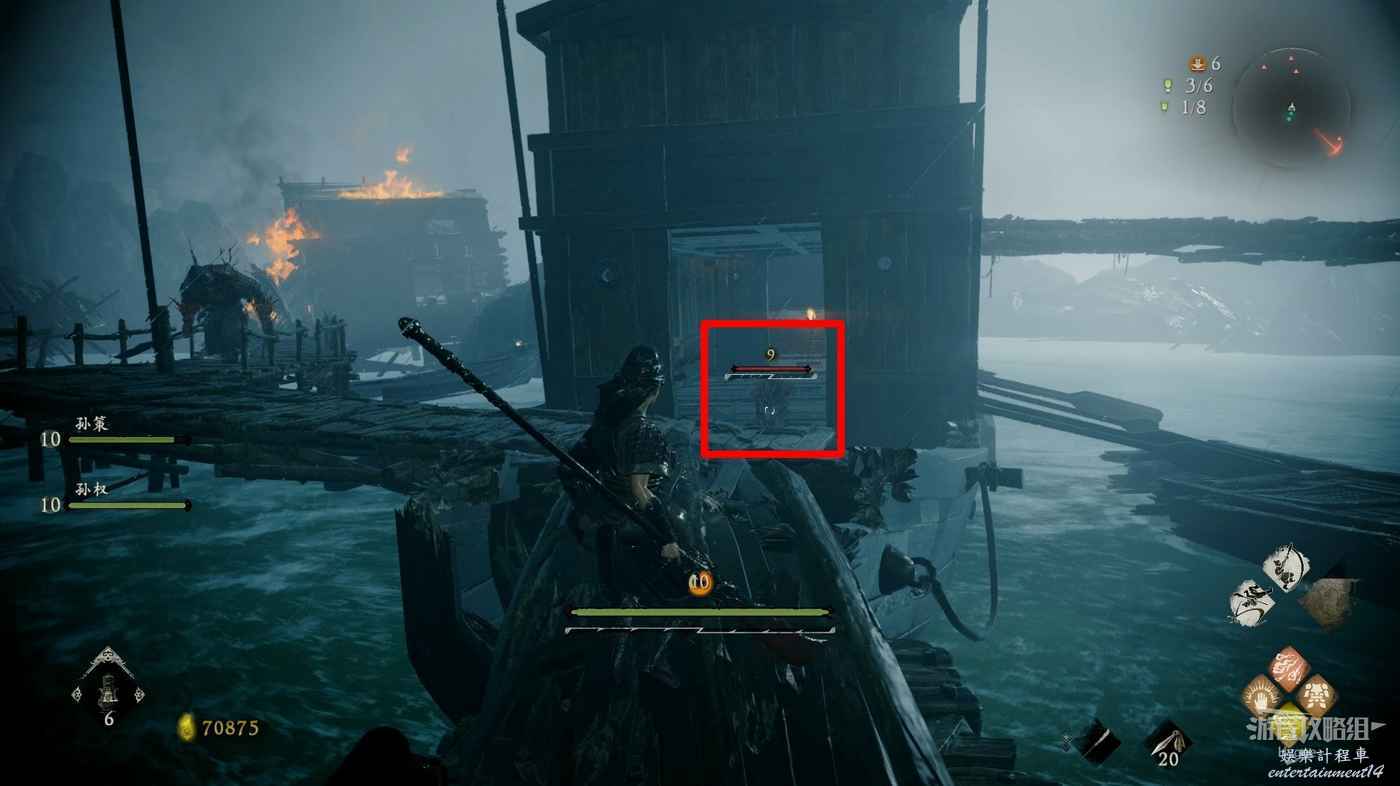 來到襄樊後於孫策孫堅一起進入城市尋找孫堅的下落,本關卡中需要注意不要落入水中。