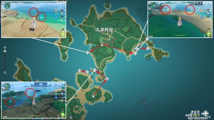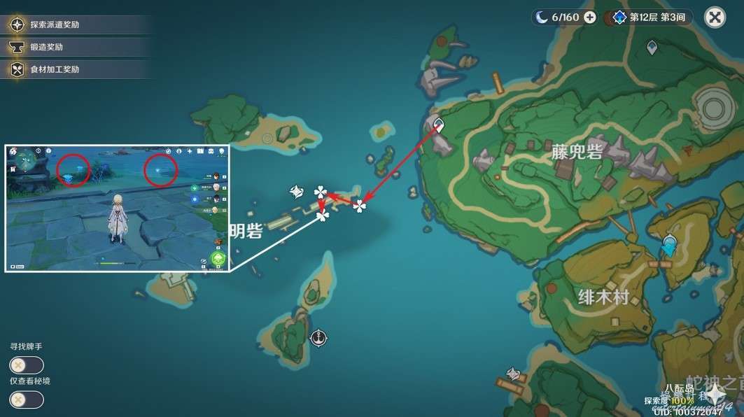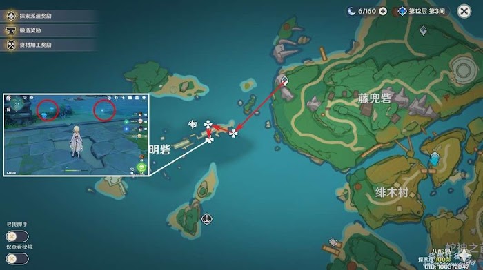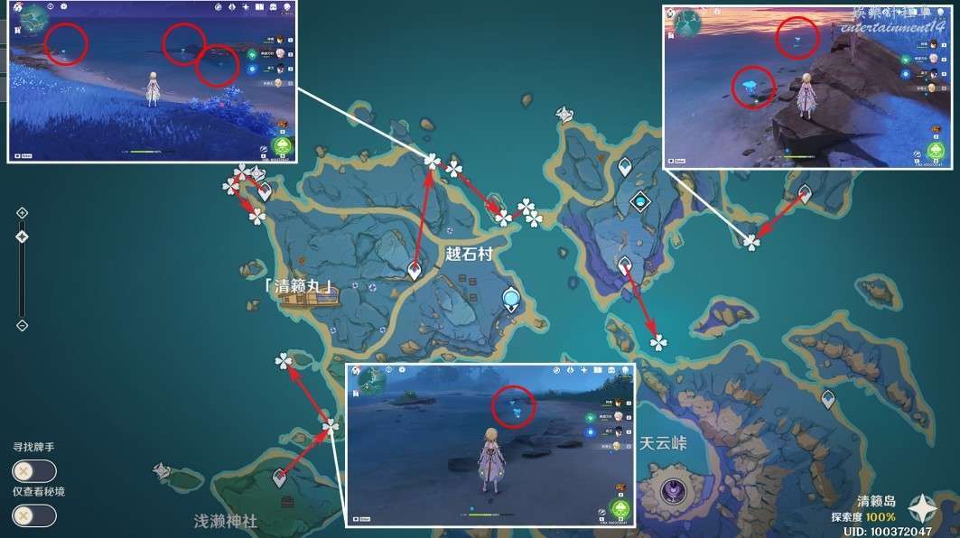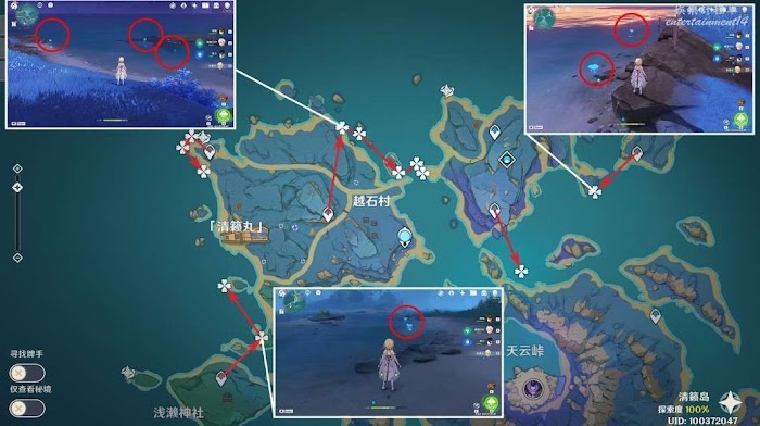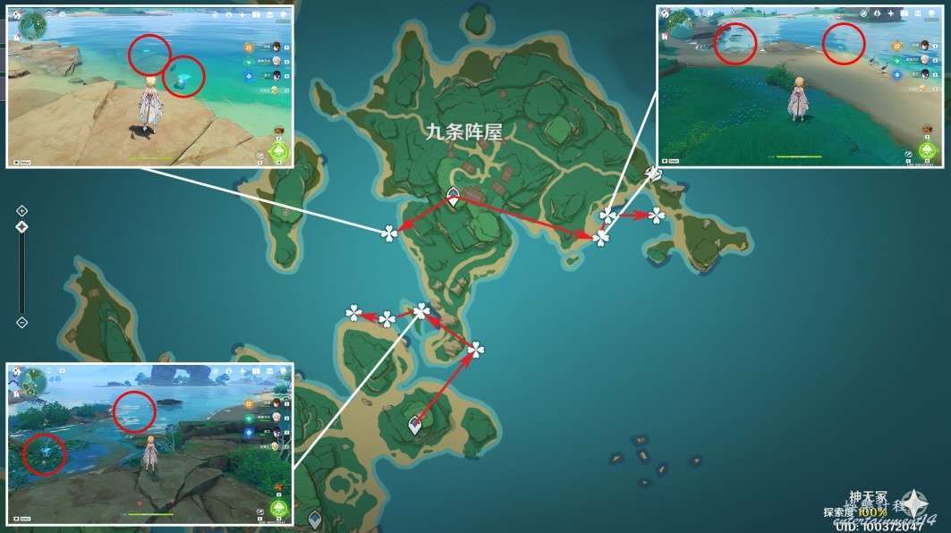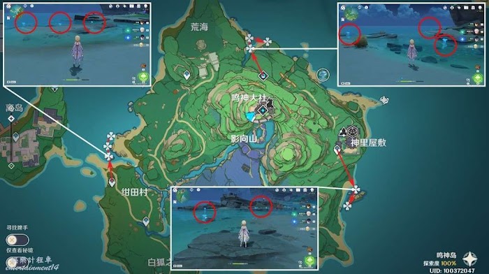(2)位於稻妻,建議在隊伍中加入五郎,天賦可以標記特產位置