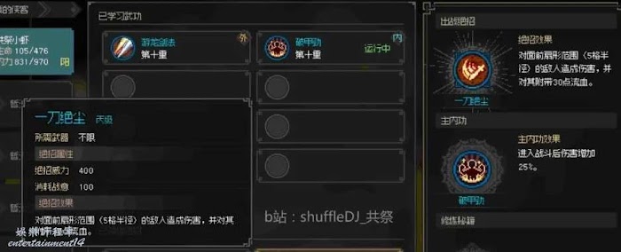 回去找一刀 得300貢獻 學到絕招一刀絕塵 還算湊合 範圍相當大