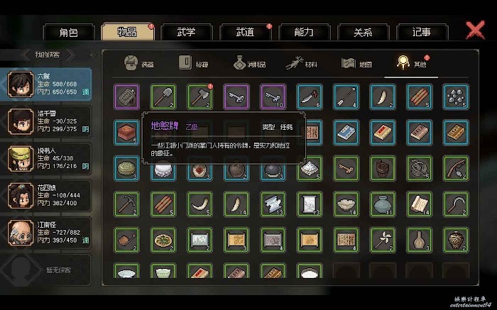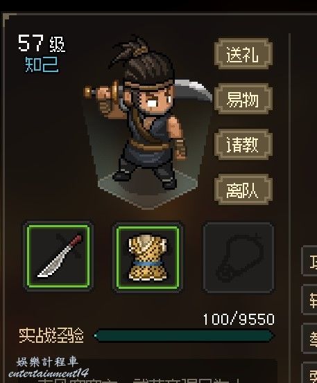 打完後老孔還會裝傷(不是你到底打啥了),完事之後給你50名聲把你踢了,不過好感加了不少可以邀請。老孔是唯一入隊之後能送禮的(說明他可太拉了)(鹹魚ing:其實入隊都能送禮吧,洛天雄也能送禮)入隊給你孔一刀的鑰匙開旁邊的箱子,(沒好東西就5000文加幾個藥)
