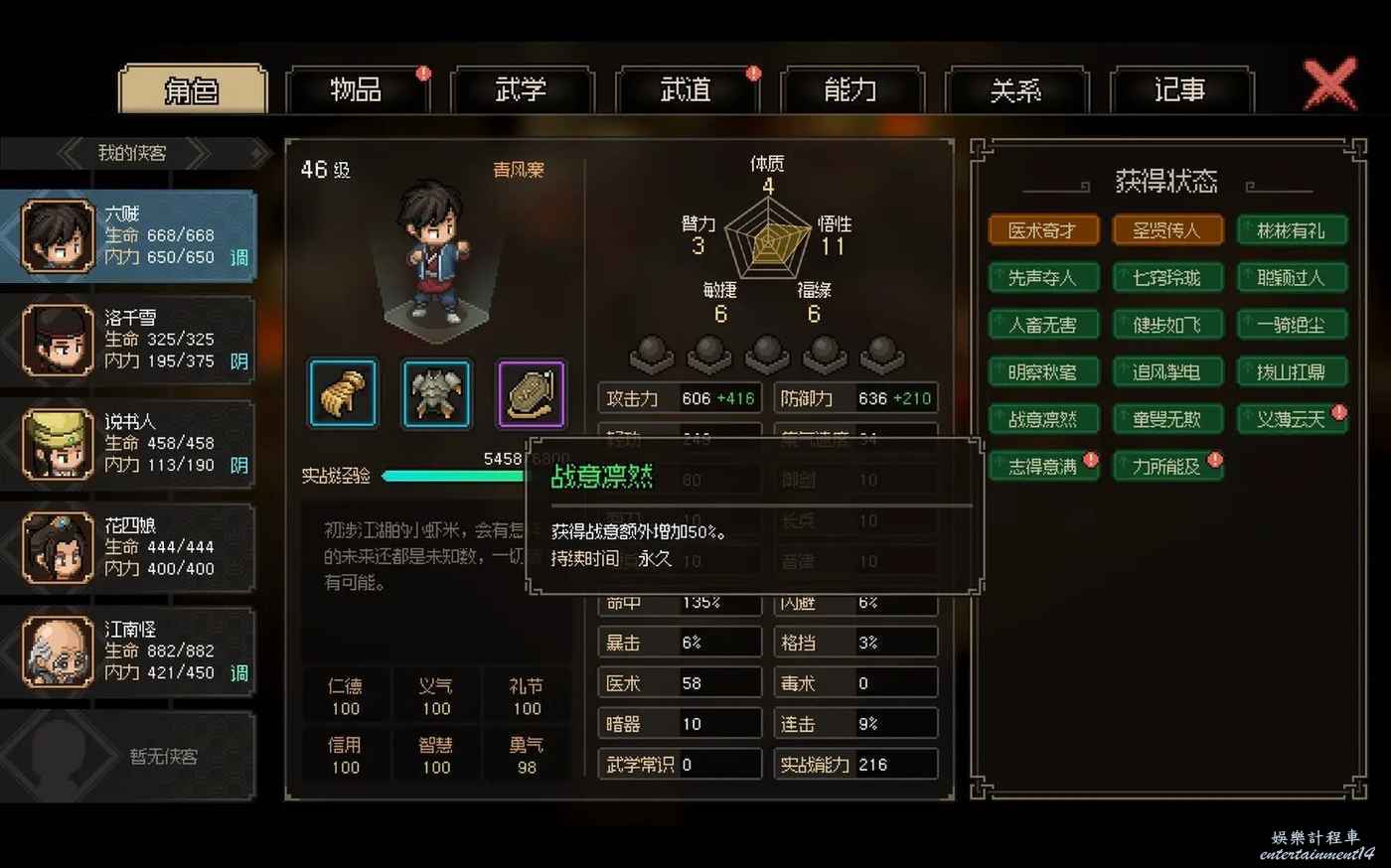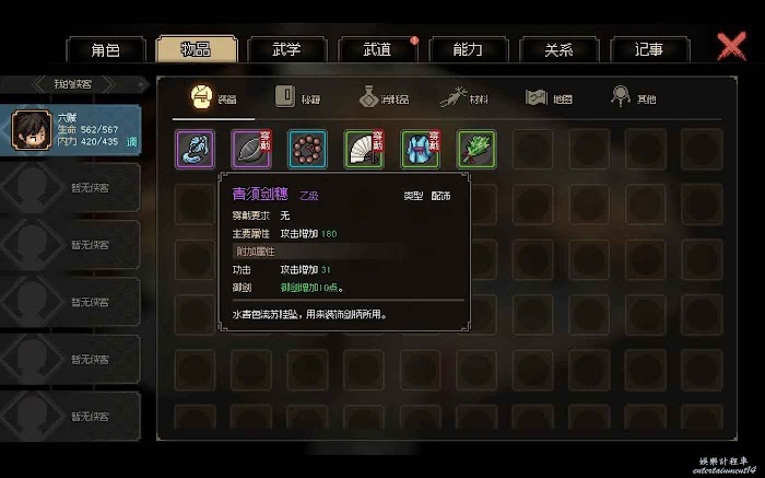 酒在老闆娘那裡買買了綠色的還有藍色的都給鐵匠,等第三天鐵匠門派小輩來觸發劇情任務,要邀請鐵匠入隊,如果老闆娘不在隊伍,那麼要還2000文錢欠的錢。老闆娘在就一筆勾銷。。對話歐冶大怨種,就能拜入劍派了,沒錯你是關係戶進去的。如果你沒有天賦詞條,你連第一個劍法都練不了,後面的和你都沒有關係。