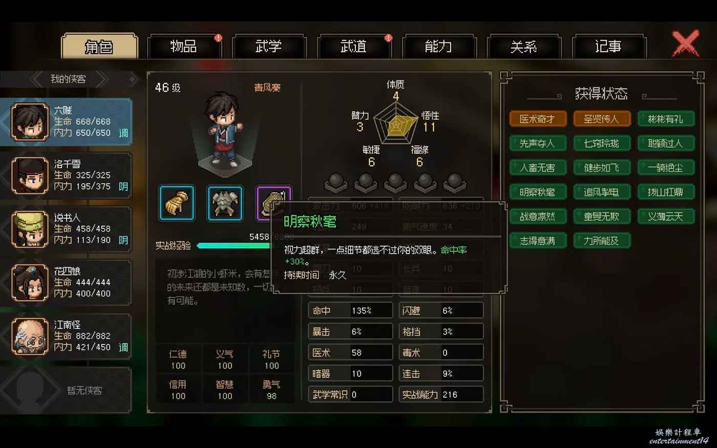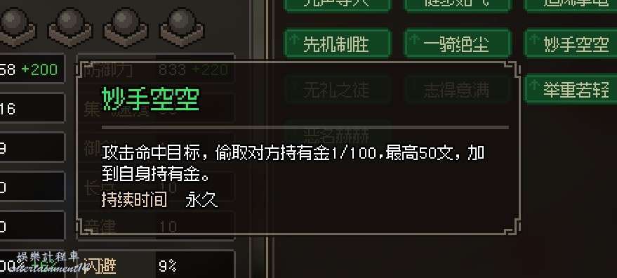 1:進了燕子塢惡名必赫赫(每次使用暗取技能仁德-2)