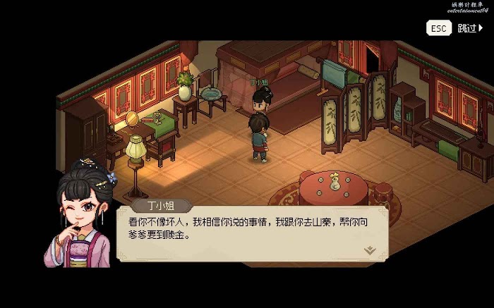 7、 寨中第二個任務是綁票丁家大小姐,丁員外私吞賑災款,為了讓這筆錢返還給流民,我們前往丁家香閨
