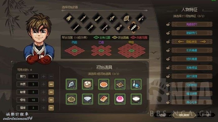 之後的建立任務介面,隱約感覺到了一點傳統CRPG的味道,可以在這裡分配屬性點數、選擇武器以及人物特徵,