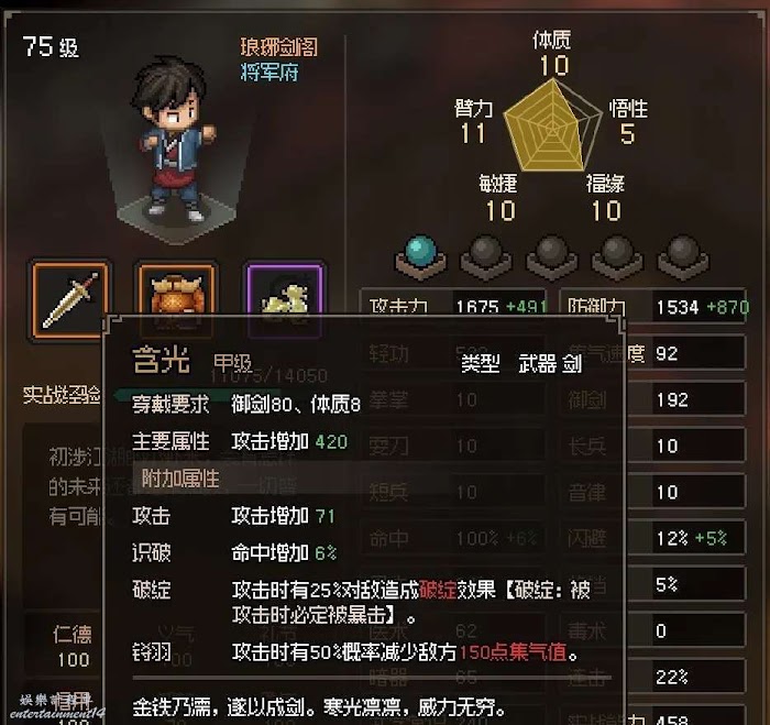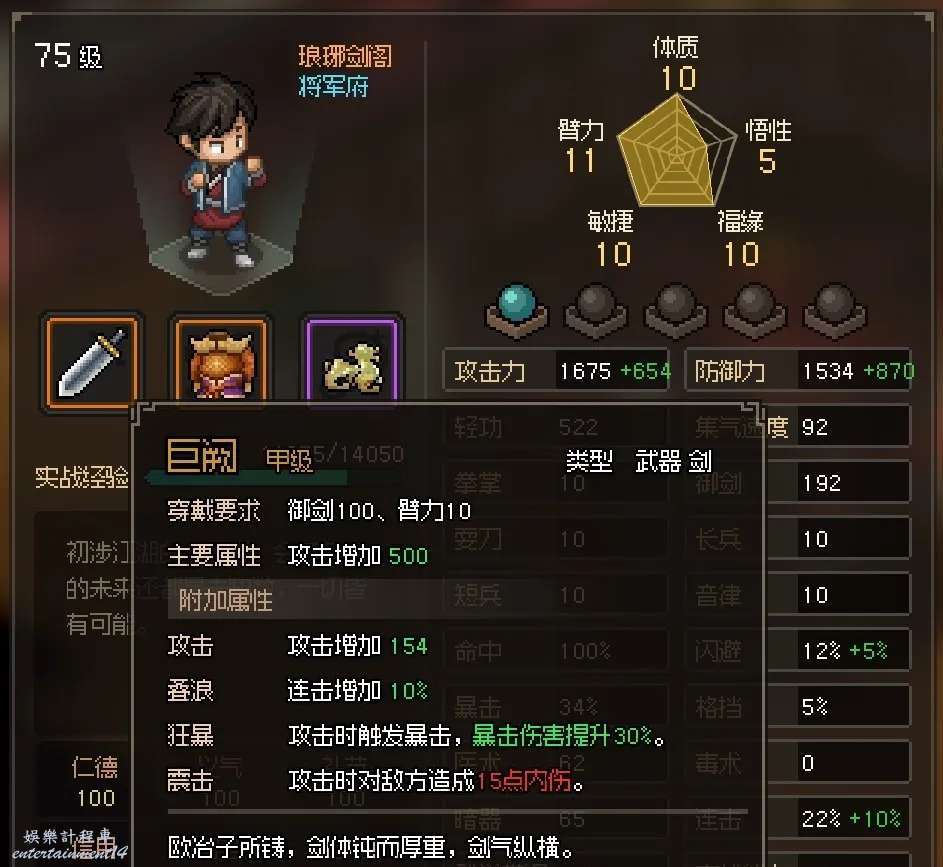 大俠立志傳 (Hero’s Adventure) EA版橙色名劍武器面板展示
