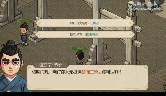 然後加入道玄宗以後,你如果這個時候天賦選的什麼都很好,可以直接去禁地門口進入戰鬥然後撤離開打然後戰敗就可以進入無極洞了。如果沒那個底子就老老實實開始偷竊,直到我們的道德到了-10