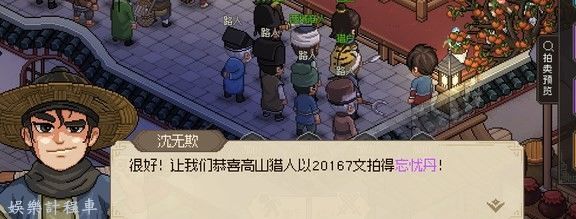 然後往右上角走,有個富商在裡面的是個拍賣行,然後進去,我們賣掉我們之前偷到的兩個東西,或者直接賣忘憂丹也行