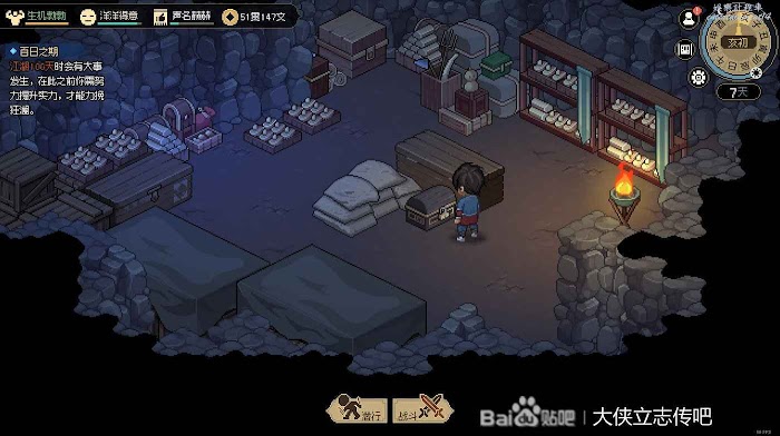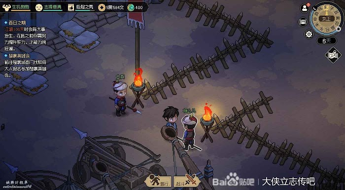 跟館主切磋一下等快到子時,就可以去武備庫做劇情了,有人偷軍糧。