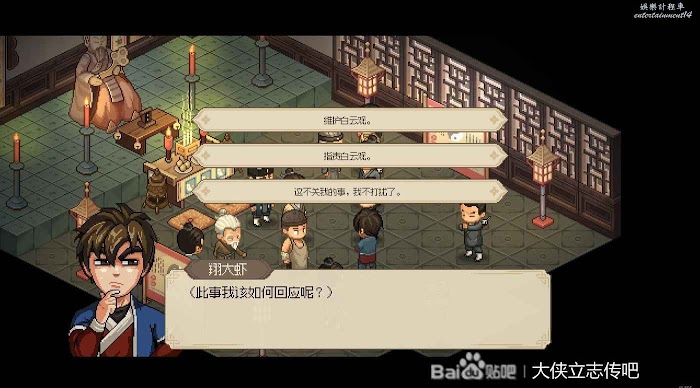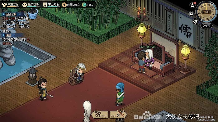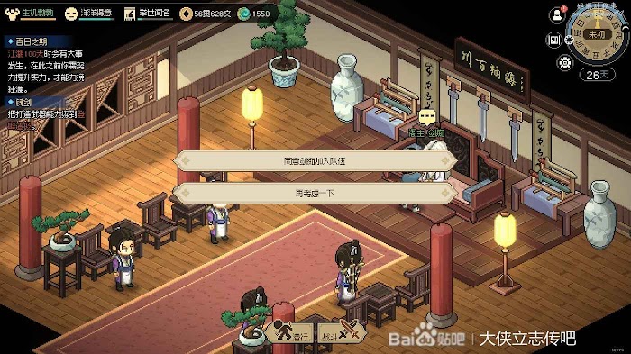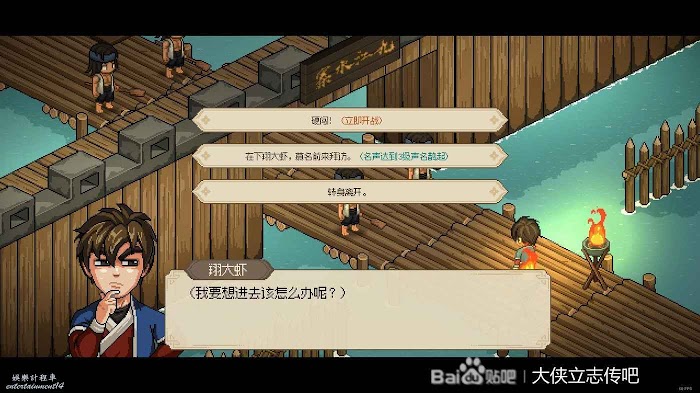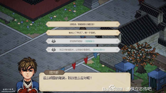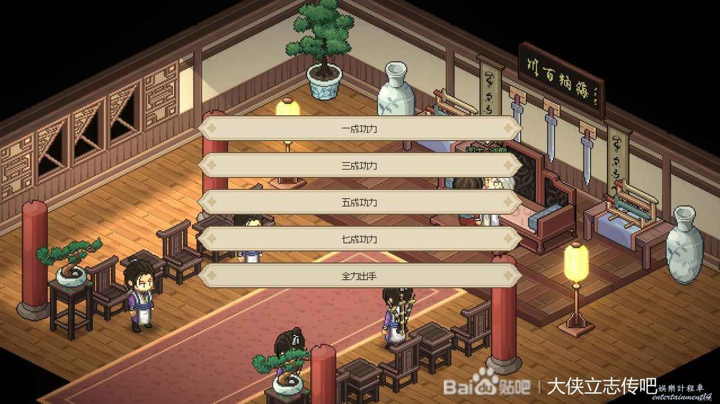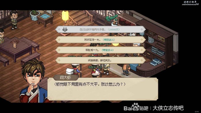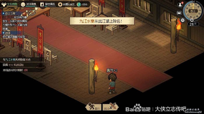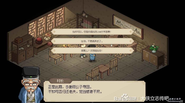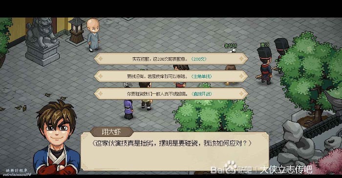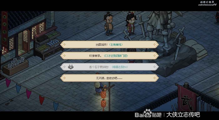 往右走進武館,觸發劇情,三個鏢局爭奪一本垃圾秘籍(其實還行),選擇為自己而戰,這個主要是打架拿聲望。正常打完就有4級聲望了,方便送禮