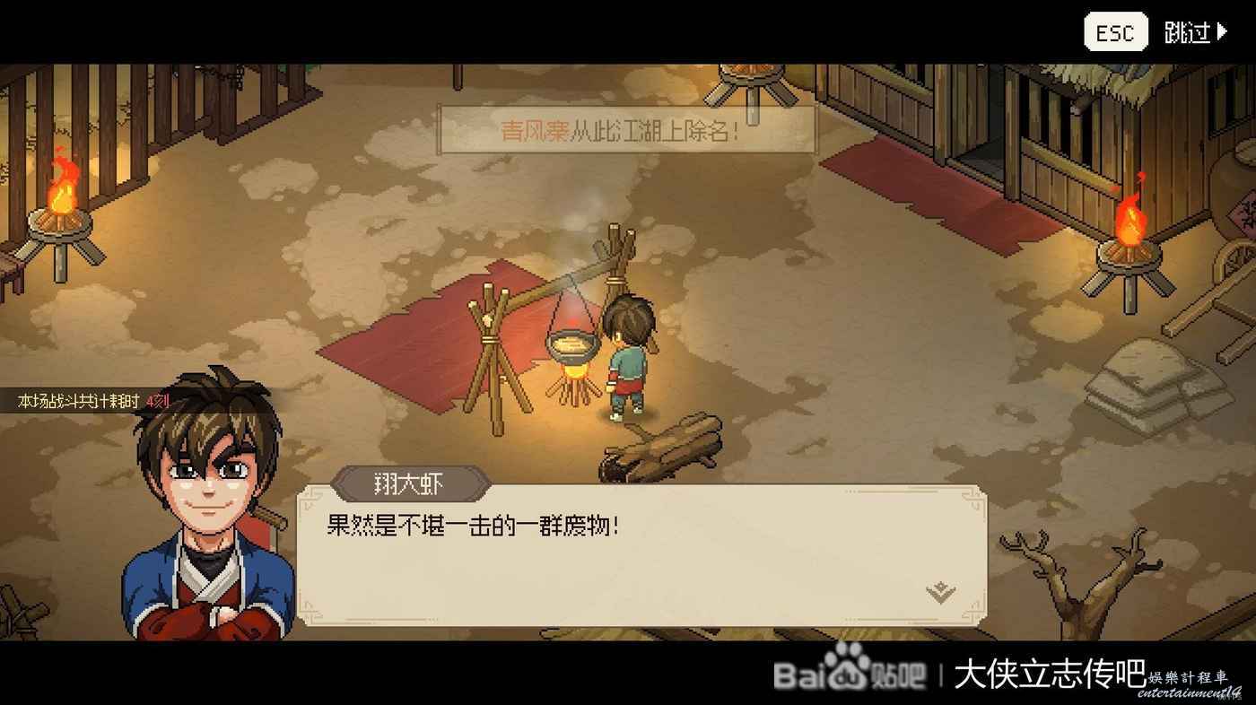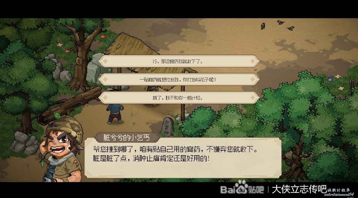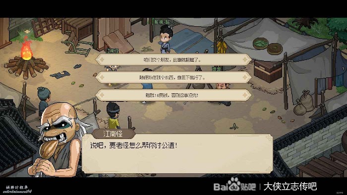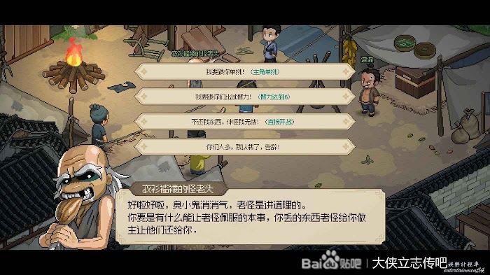 滅完燕子窩還有最後一件事,就是去把邋遢張拉入隊。他的好感任務是打贏他就行,打法非常簡單,扔幾個雞毛箭掛流血,然後一直跑路+休息,憑藉延年益壽功和玉佩的回血就行