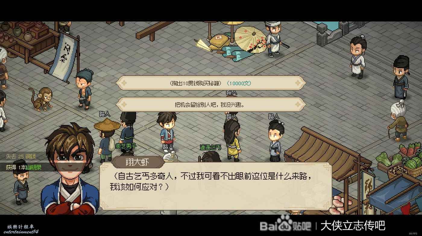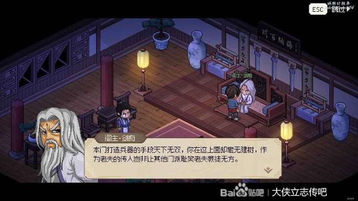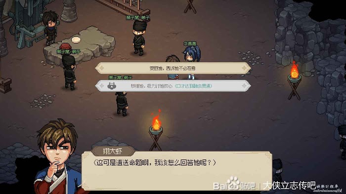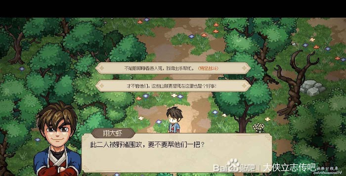 初始劇情了,幫誰都無所謂,看你想進哪個門派。這裡建議是不要先進劍閣,否則不容易拉高劍癡的好感。我這個檔是選擇的燕子窩。然後接下來的劇情讓你選功法秘籍,都不要直接拿錢。