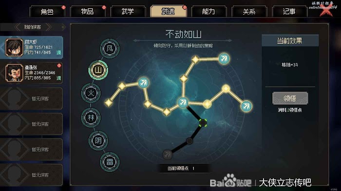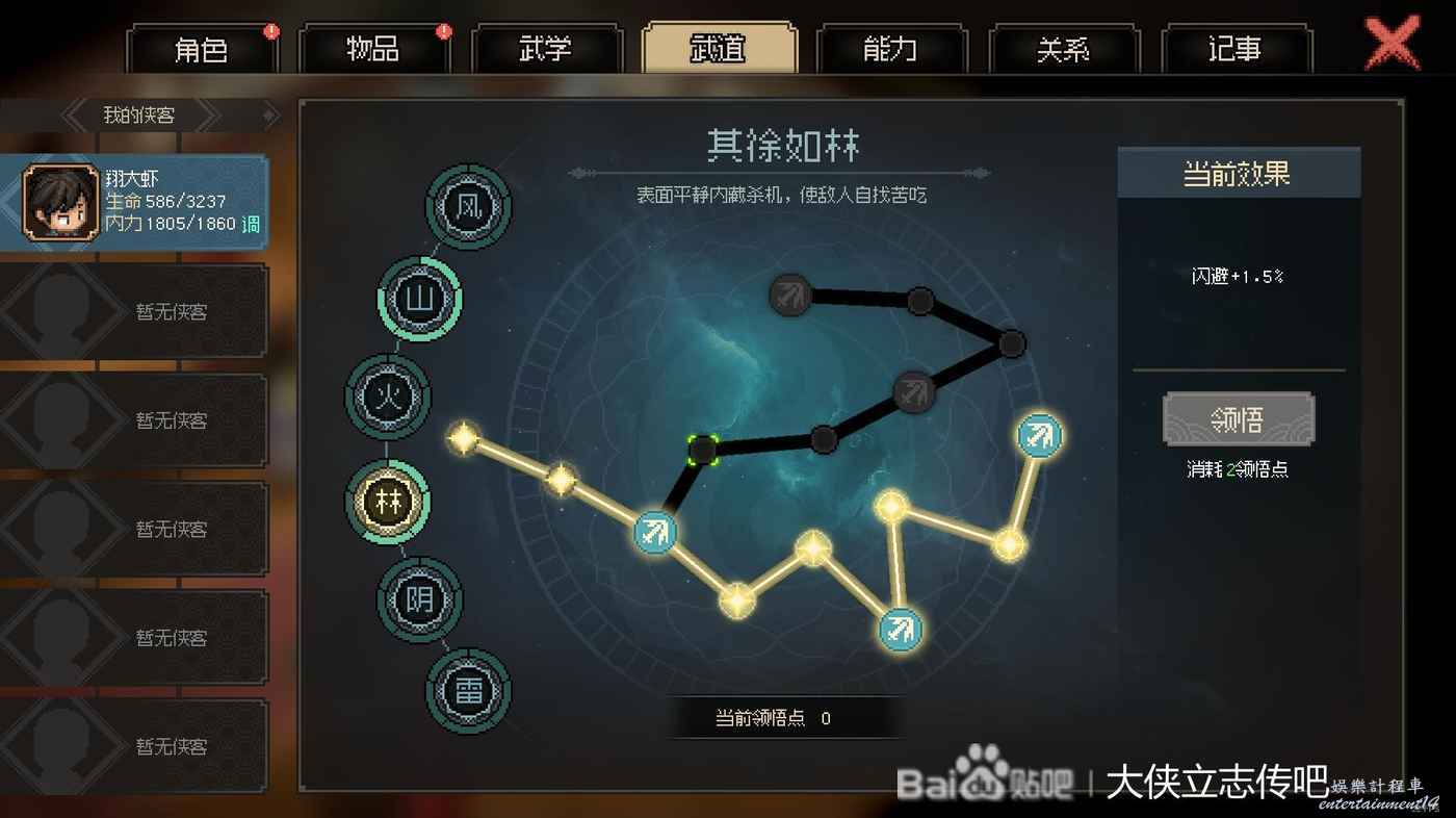 目前的武學和加點。這裡更正一下,林還是點下面的借力打力好一點