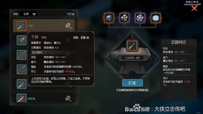 終於鍛造等級4級了,找掌門換幹將圖紙,鍛造出幹將,這個就是畢業武器了。目前禦劍不夠,是功法查太多了,一直沒有去修煉。接下來的時間就要去找大師兄練功了
