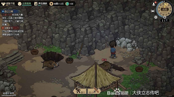 然後可以去一趟野狼谷,白天可以觸發這個劇情,跟他去可以加聲望和好感,我就不去了,六個時辰耽誤我做門派任務。野狼谷裡有梨花槍和獸環,還有丙級的挖礦點和采蟲點,可以采一下