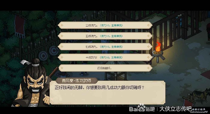 首先是武館館主,十成功力切磋贏之後,每天一次可以幫他訓練弟子1000文錢。注意,最強弟子還是有點東西的,我現在打不過。
